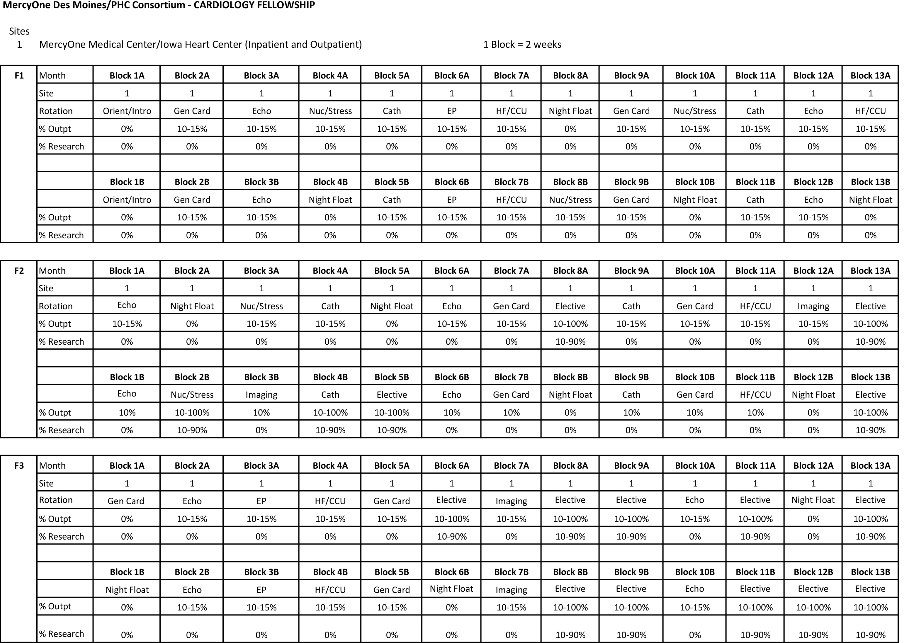 Orientation/Introduction to Cardiology (yearly, July) – F1 required attendance